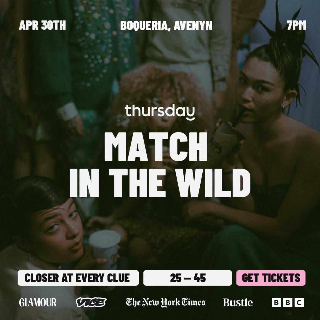 đž THURSDAY x BOQUERIA: MATCH IN THE WILD đžJust a bar, everyone single. Because in 2026, weâre all finally admitting the obvious: the best connections donât happen on apps â they happen over a drink, a glance, and a little courage.