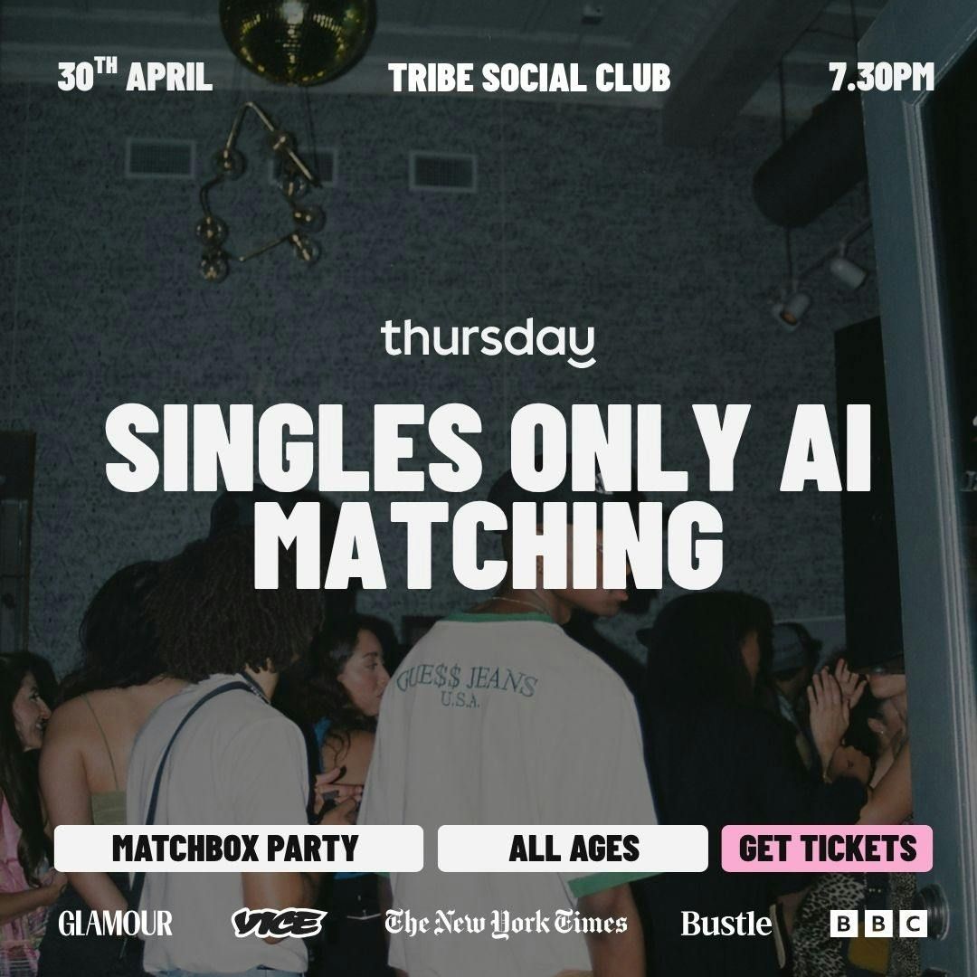 Just a bar, everyone single. Because the world in 2026 is all about meeting IRL, not on dating apps!At Tribe Social Club Baixa Chiado, Thursday will be partnering on this evening with Matchbox - a software that uses relationship science to find your most compatible match at the party. Doors open at 7.30pm and close at 8.15pm - you will receive a questionnaire to fill out on arrival.