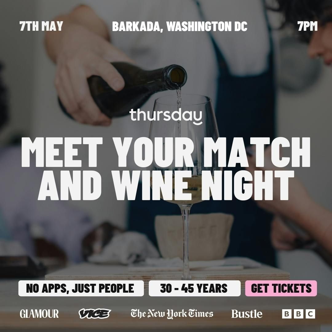 Thursday | Matchmaking Wine Bar (30-45) | Washington D.C.Just a bar, everyone single. Because the world in 2026 is all about meeting IRL, not on dating apps!