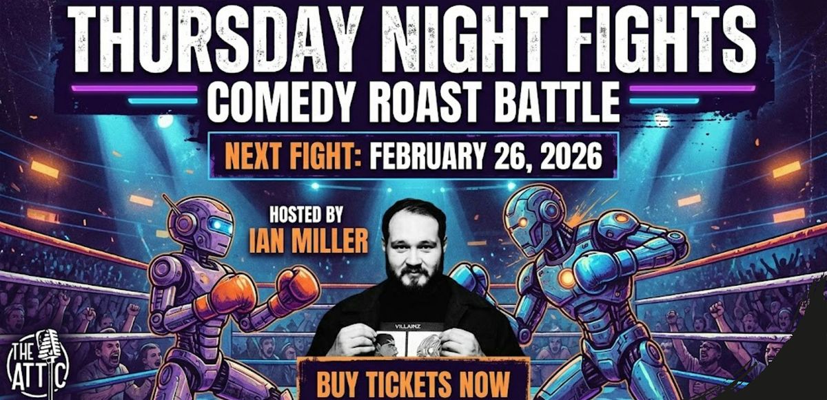 Looking for roast battles near me, comedy shows in Columbus, or stand-up comedy tonight? Thursday Night Fights at The Attic Comedy Club is the best live entertainment Columbus has to offer.