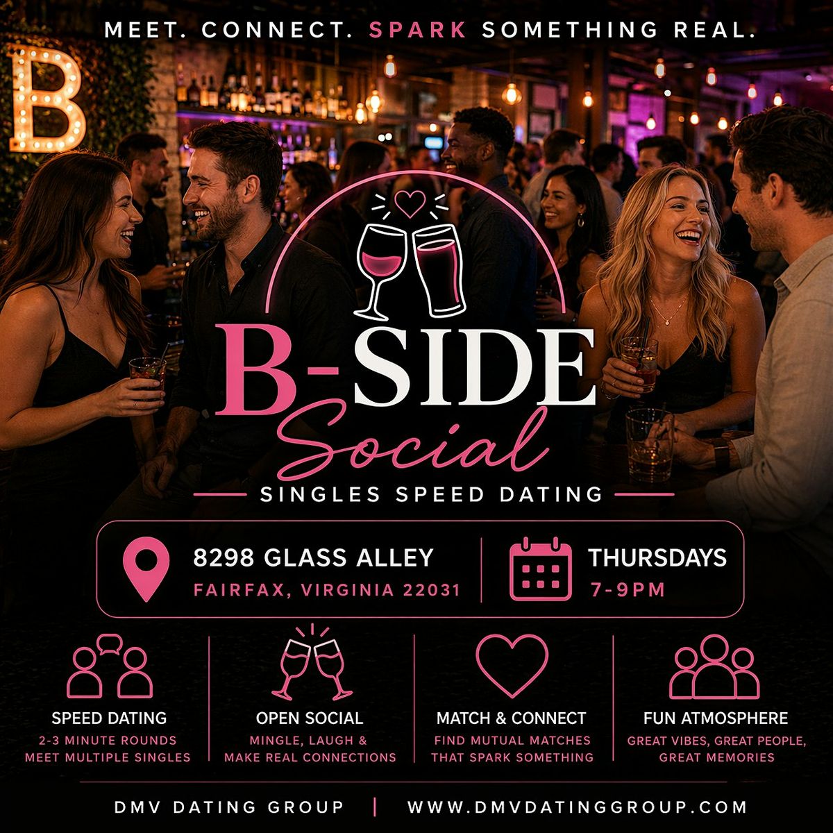 Join us for Thursday Night Singles Speed Dating at B-Side Social in Fairfax, Virginia β a fun, casual singles event designed to help you meet new people in a stylish, upbeat social setting.