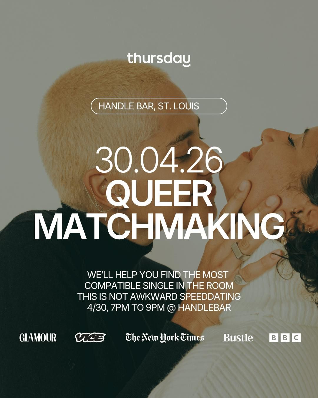 Join us for our first ever Queer mystery Matchmaking event at Handlebar! Take a short quiz to matched with the most compatible person in the room when you arrive. After that, we'll mix, mingle, and meet Queer singles. How It Works: