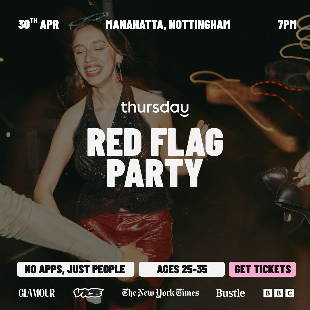 Wanna know what you're getting into straight away? Thursday Dating’s infamous Red Flag Party, we’re flipping the script on dating. Every guest rocks up in red ❤️ and gets a name tag... but instead of just writing your name, you’ll confess your biggest red flag.