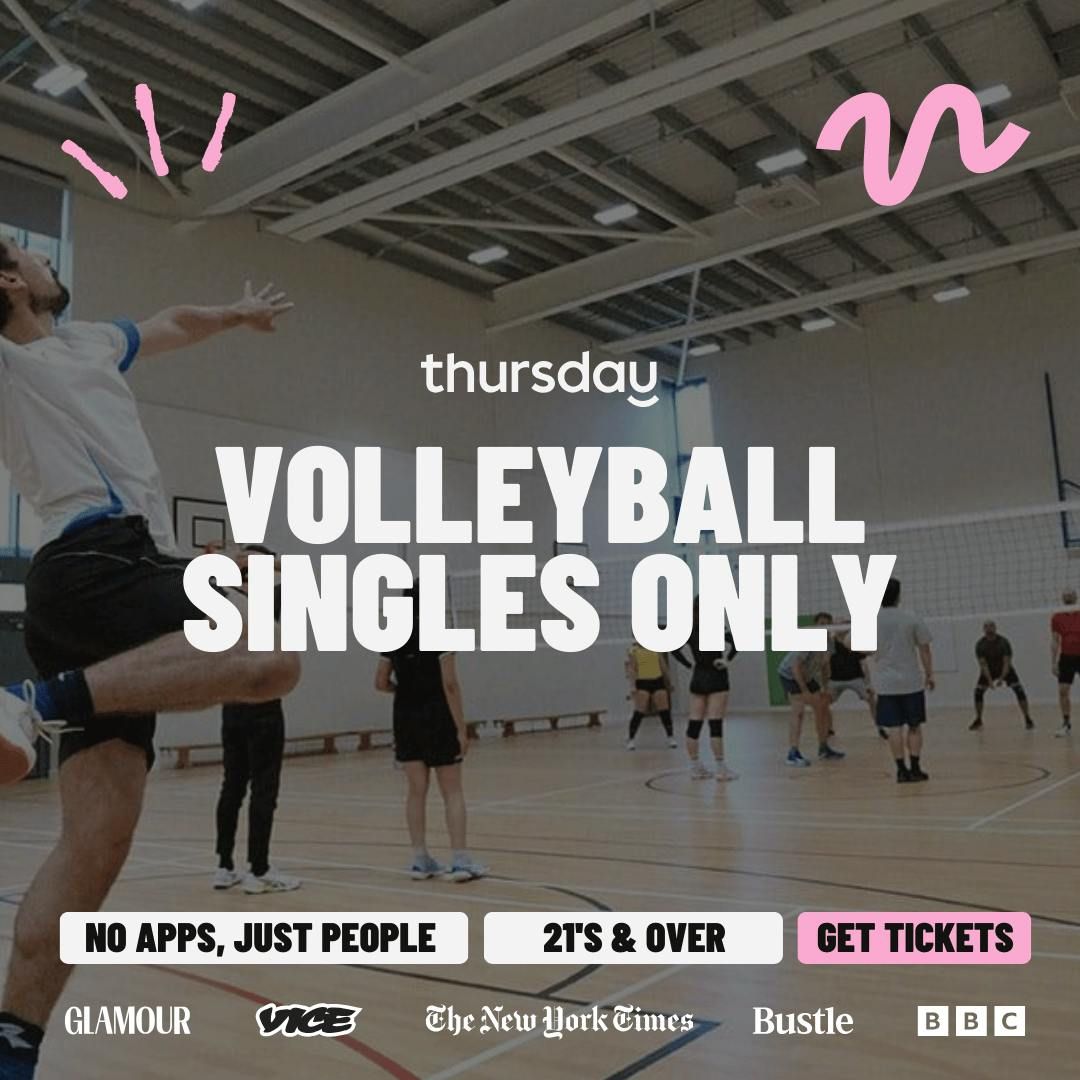 Indoor Volleyball, everyone single. Because the world in 2026 is all about meeting IRL, not dating apps!Hello London! It's always a delight to see you, the gorgeous Thursday singles are heading to Canary Wharf to play some volleyball and have a cheeky flirt!