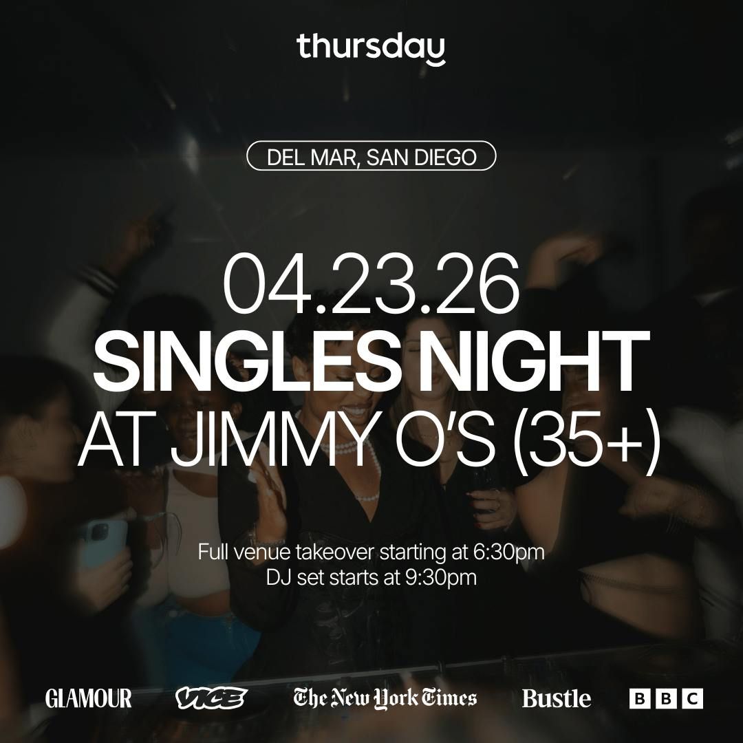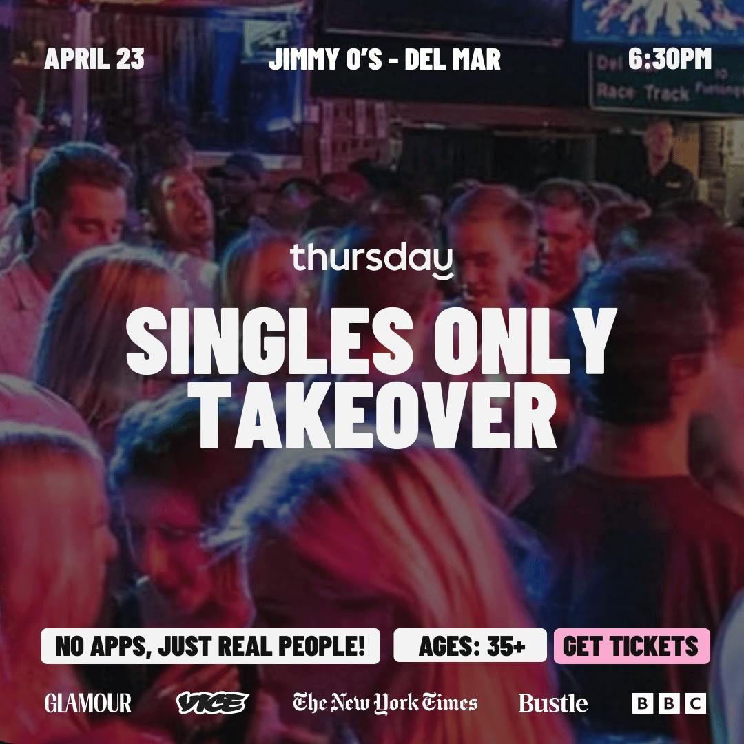 Just a bar, everyone single. Because the world in 2026 is all about meeting IRL, not on dating apps!This Thursday we are back at Jimmy O's and taking over the entire venue! Yep, it's single's night and you're invited (no couples allowed!). Everything kicks off at 6:30pm on Thursday April 23rd. Hang after the event ends at 9:30 to enjoy the live DJ spin some of your favorite throwbacks! Get your tickets ASAP before they sell out!