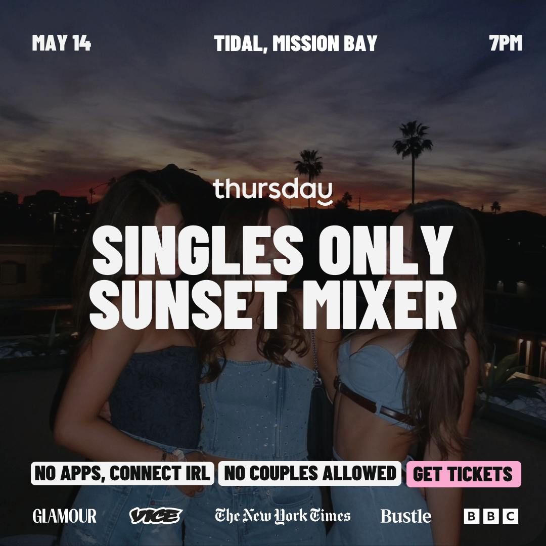 The world in 2026 is all about meeting IRL, not on dating apps!Hey there San Diego! Meet us Thursday May 14 at Tidal at Paradise Point for a singles only sunset mixers! We have an entire section of the venue reserved for Thursday Dating attendees! Come escape the everyday and soak in the beautiful views while making some new connections! Thursday night is ISLAND VIBES at Tidal, so come dressed in vacation inspired attire (yes, break out that Hawaiian t-shirt) 🌺