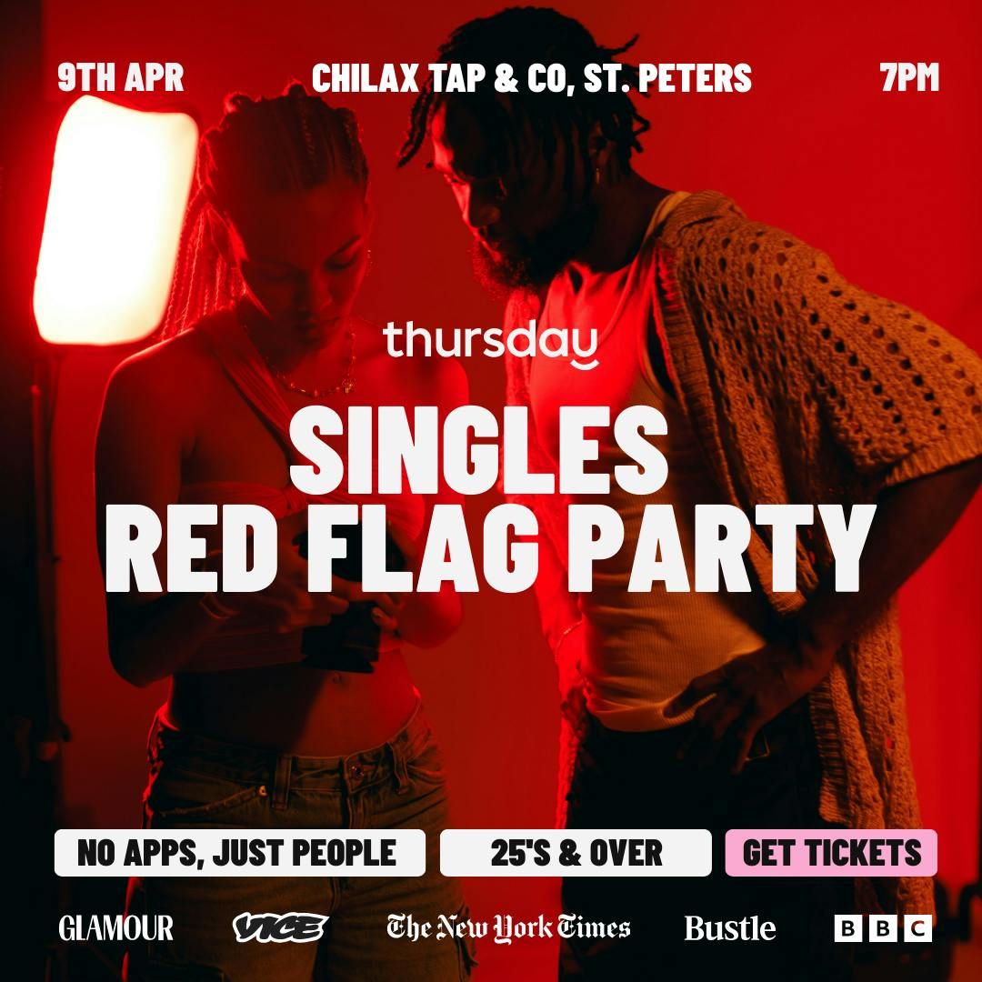 Join us on April 9th for a Singles Red Flag party from 7 to 9 PM at Chillax Tap & Co in St. Peters!🚩 What’s a Red Flag Party? Glad You Asked.