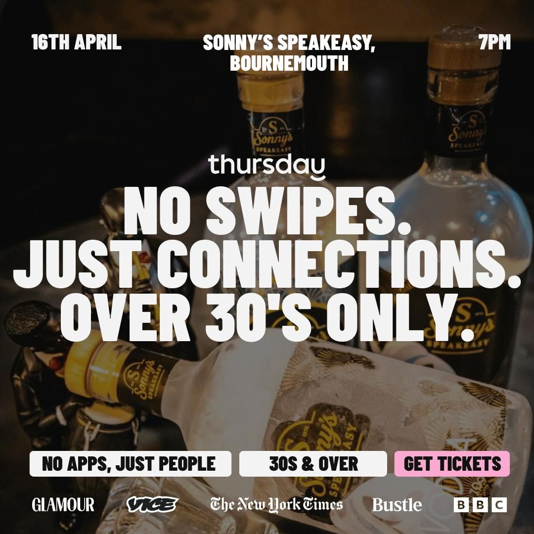 Just a bar, everyone single. Because the world in 2026 is all about meeting IRL, not on dating apps!Hello Bournemouth! It’s always a delight to see you! The gorgeous Thursday Singles are going back to Sonny's Speakeasy, and taking over on the 16th of April for a romantic, fun-filled evening. This time, the event is for over 30’s only!