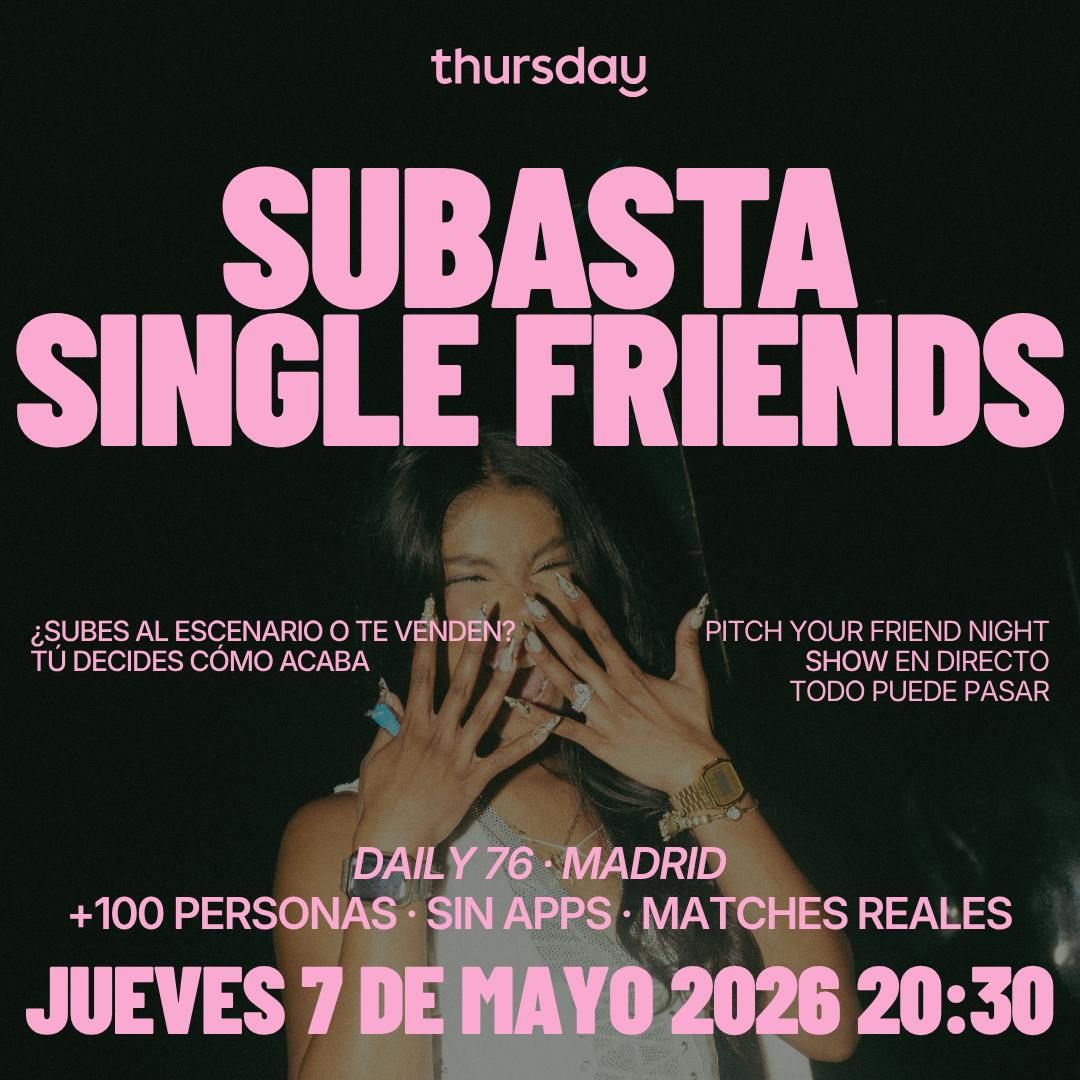 📩 ¿Te atreves? Escribe en IG a @Thursday.Madrid para participar. Plazas limitadas. Los mejores pitches suben al escenario.✨ Qué encontrarás• Un ambiente lleno de singles• Conversaciones naturales, sin presión• Coqueteo cara a cara• Química real, sin filtros😉 Solo un bar donde todo el mundo es soltero⭐ Entradas• Early Bird 🎟️ Llega antes de las 21:00 y tienes entrada garantizada• Entrada General 🎫 Mismas condiciones• En Puerta 🚪 Solo si el anfitrión da luz verde (sujeto a aforo)⏰Horario 21:30 = el mejor momento para conocer gente🪪 Importante Mayores de 18 años Trae tu DNI o Cupido no te dejará pasarNo hay reembolsoAccesibilidad: Sí