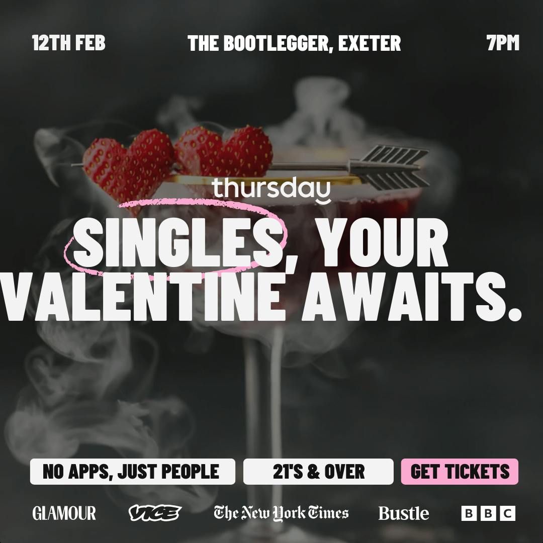 Just a bar, everyone single. Because the world in 2025 is all about meeting IRL, not on dating apps!Hello Exeter! 💕It’s always a delight to see you! The gorgeous Thursday Singles are taking over The Bootlegger on February 12th for a romantic, fun-filled evening — the perfect chance to find your Valentine’s date! 🌹✨