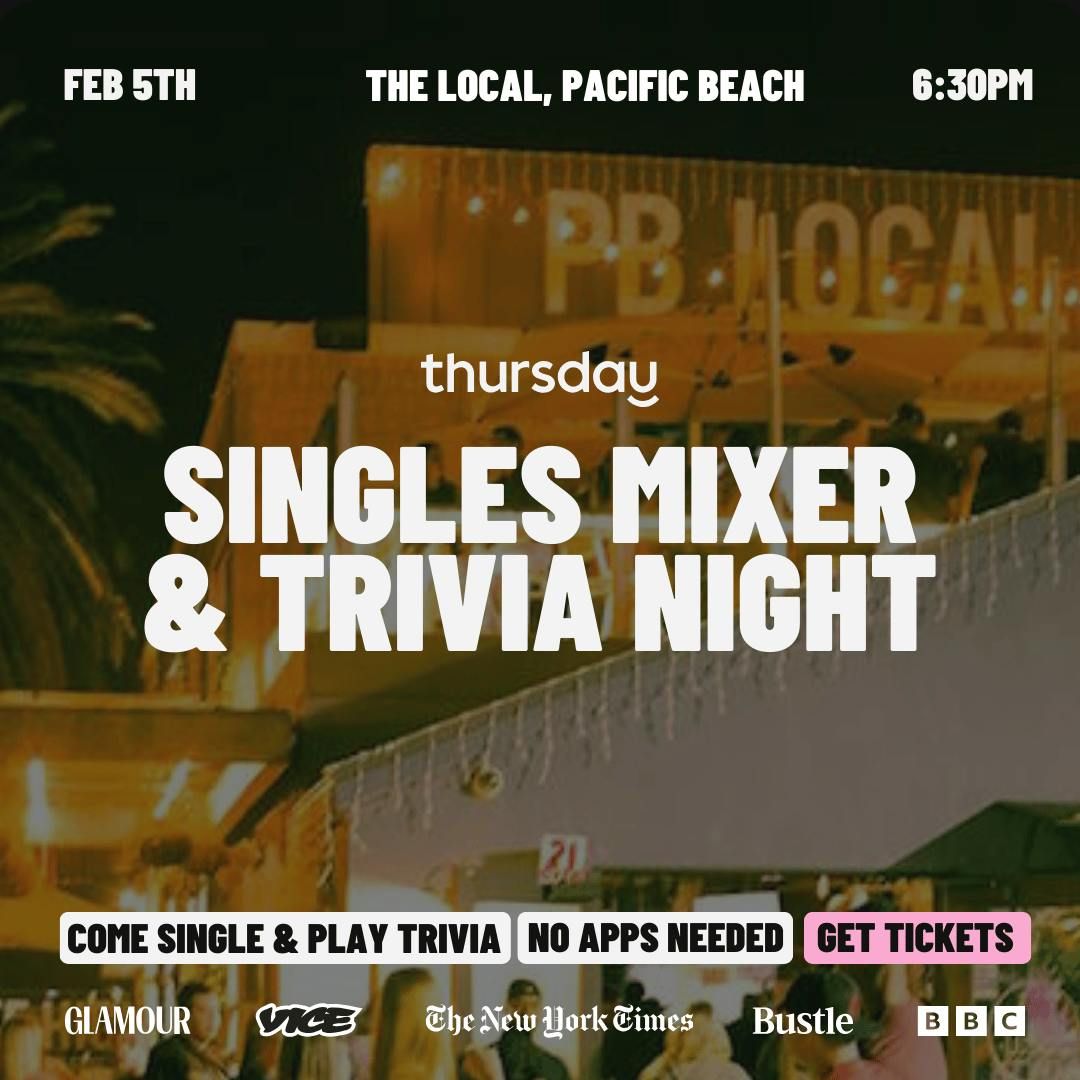 Just a bar, everyone single. Because the world in 2026 is all about meeting IRL, not on dating apps!We are stoked to be hosting our first event in February at one of the most popular bars in PB... THE LOCAL! We will be taking over their outdoor beer garden at 6:30pm & filling it with over 100 San Diego Singles. Come hang out, play some trivia and potentially find your date for Valentine's Day! Be sure to get your tickets before they're gone!