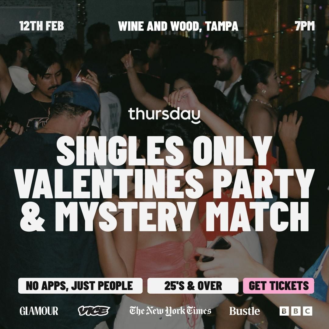 Just a bar, everyone single. Two days before Valentines Day. Because the world in 2025 is all about meeting IRL, not on dating apps!Join us for a Singles Mixer and Mystery Matching at Wine & Wood, Hyde Park’s coziest wine bar known for its warm ambiance, wood-fired pizzas, and exceptional wine list. Located at 614 S Howard Ave, Tampa, this neighborhood favorite offers a relaxed, upscale setting perfect for mingling and meeting new people. Enjoy over 100 wines by the glass or bottle, delicious shareable bites, and a welcoming atmosphere that makes conversation easy. Free street and nearby lot parking Come solo (or bring a friend), sip something new, and see where the night takes you. ❤️