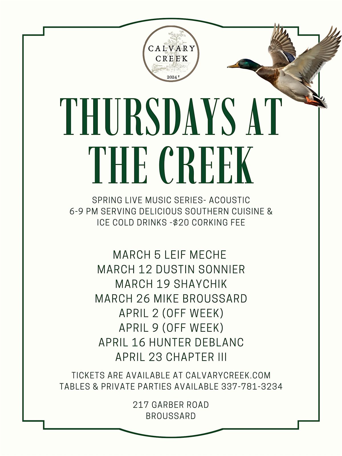 Don’t miss out on this cool event—come join us at the creek and make your evening unforgettable!