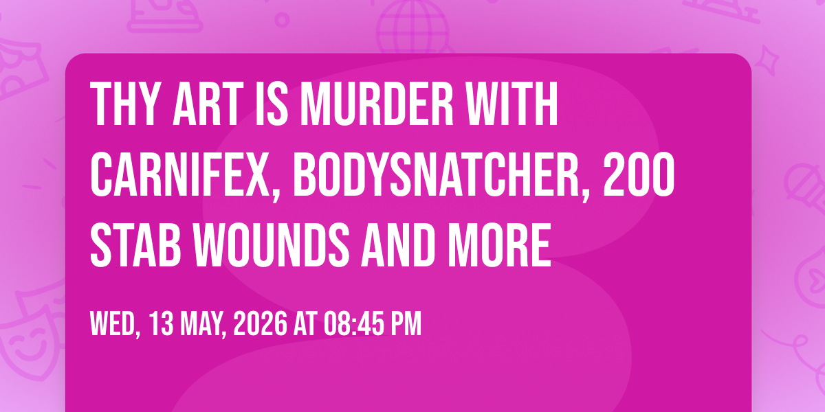 📍 Location: 39.2904, -76.6123🎉 Prepare to be amazed at Thy Art Is Murder with Carnifex, Bodysnatcher, 200 Stab Wounds and more, the most anticipated gathering of the season! 🌟 Set against the stunning backdrop of Nevermore Hall in vibrant Baltimore, MD, this event promises to redefine your expectations. 📅 Mark your calendars for May 13th, 2026 at 08:45 PM and get ready to immerse yourself in an atmosphere of wonder and excitement. ✨ From the moment you arrive, you'll be transported into a world where memories are made and stories come alive. They have crafted an experience that perfectly harmonizes entertainment, innovation, and community spirit. 🌈 Join us as we create moments that will be discussed for years!