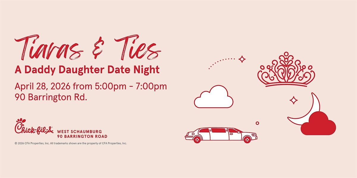Join us at Chick-fil-A West Schaumburg for Tiaras & Ties: A Daddy Daughter Date Night—an evening designed to celebrate the special bond between dads and their daughters.