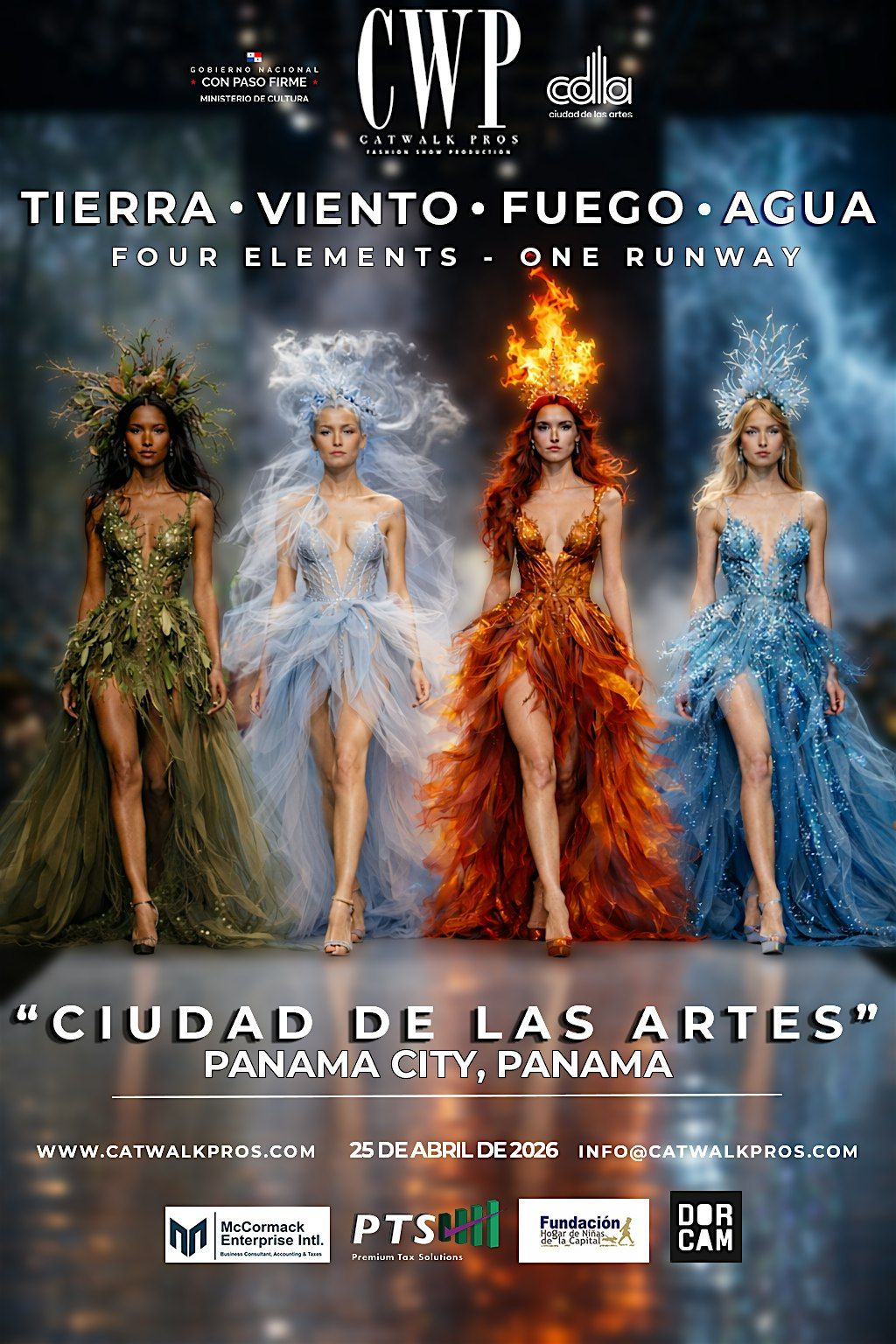 The evening will feature national and international designers, innovative wearable art, and special artistic contributions, including a donated piece by artist and photographer Victoria Murillo for the event auction. Produced by CatWalk Pros, Tierra, Viento, Fuego, Agua supports environmental awareness and cultural exchange, with a portion of proceeds benefiting Fundación Hogar de las Niñas de la Capital, a nonprofit organization dedicated to empowering and educating girls in Panama.