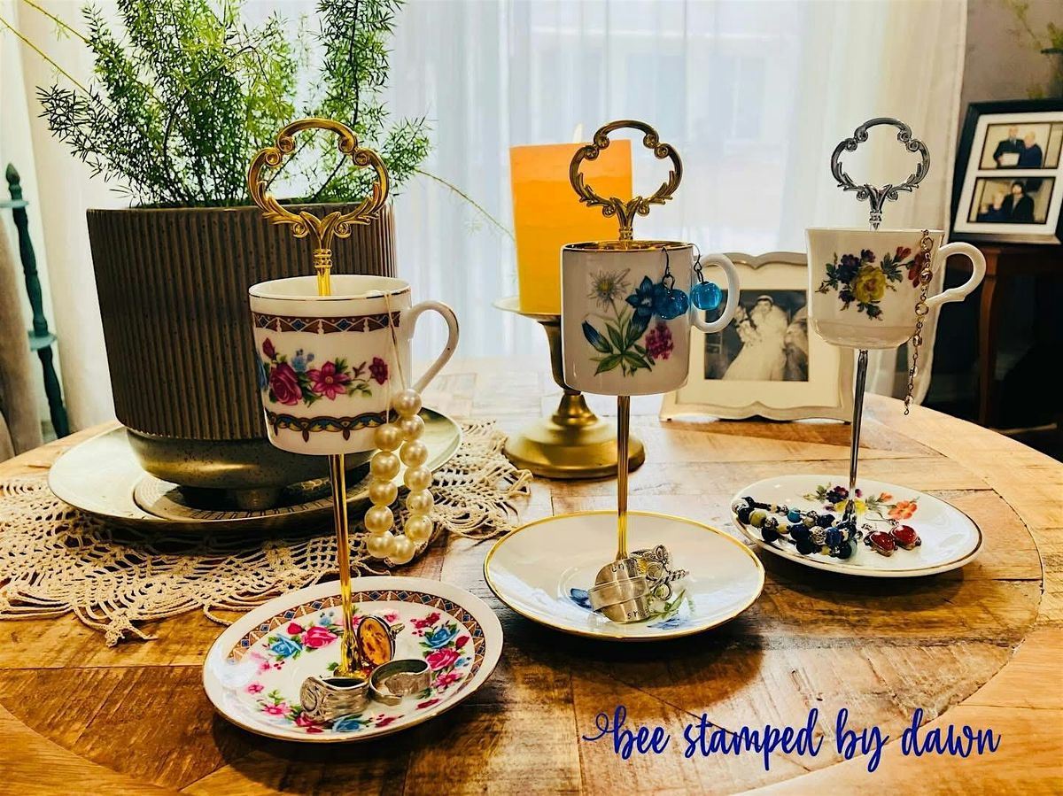 Come join me in the beautiful greenhouse at Calgo Gardens for a hands-on workshop where you'll design and assmble your very own vintage 3tiered plate stand using beautiful vintage saucers, vintage plates, antique teacups and a selection of quality hardware. No experience necessary. You will be able to create your own one of a kind plate stand using up to 4pieces of vintage China that I have hunted the corners of New Jersey and Pennsylvania for, to give you a wonderfully unique selection to get your creative brain excited for creating a beautiful keepsake.