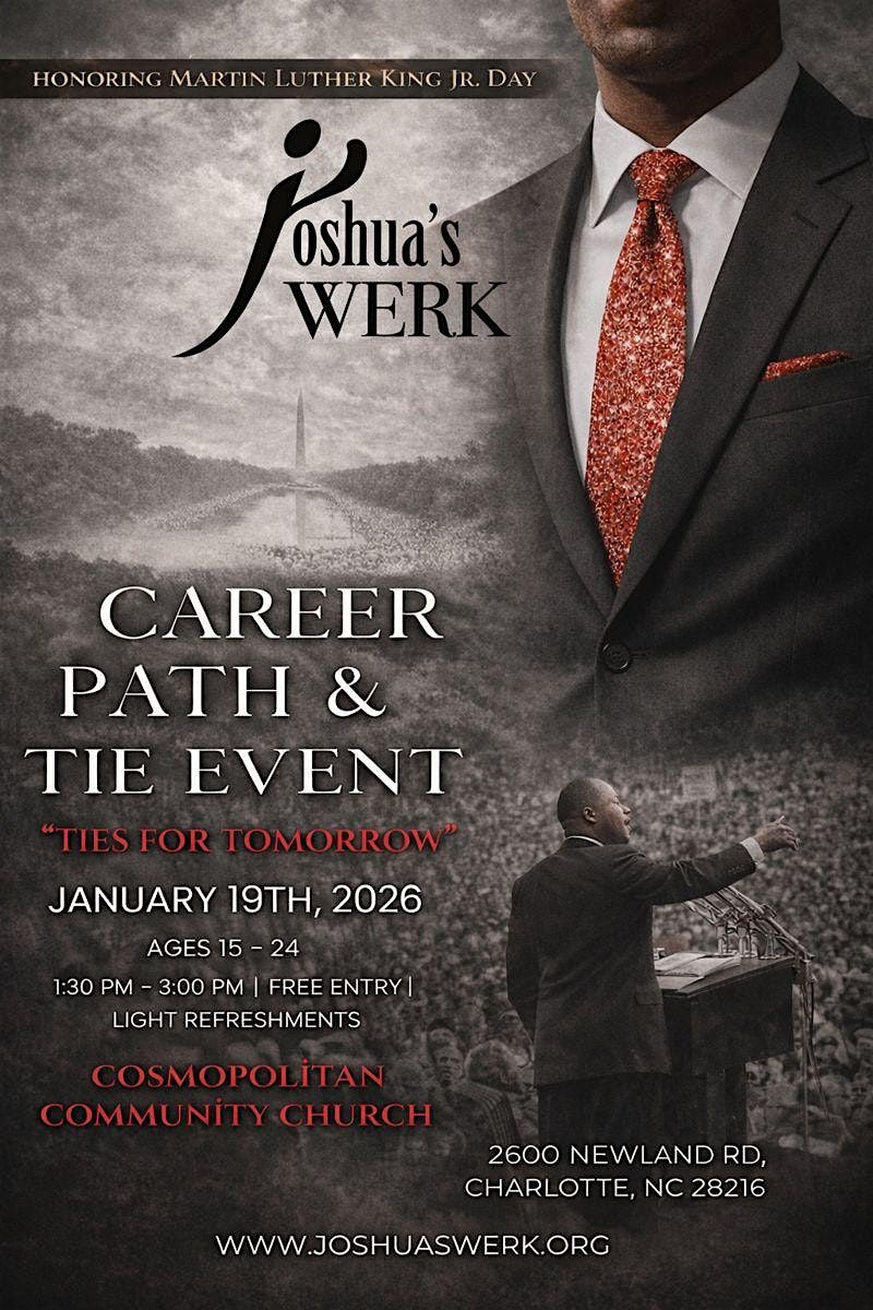 Join us in person for Ties for Tomorrow 2026 MLK Day, a special event honoring the legacy of Martin Luther King Jr. Join us at Cosmopolitan Community Church for an inspiring afternoon designed to empower young adults (ages 15–24) as they explore career paths and professional growth—all while honoring the legacy of Dr. Martin Luther King Jr.