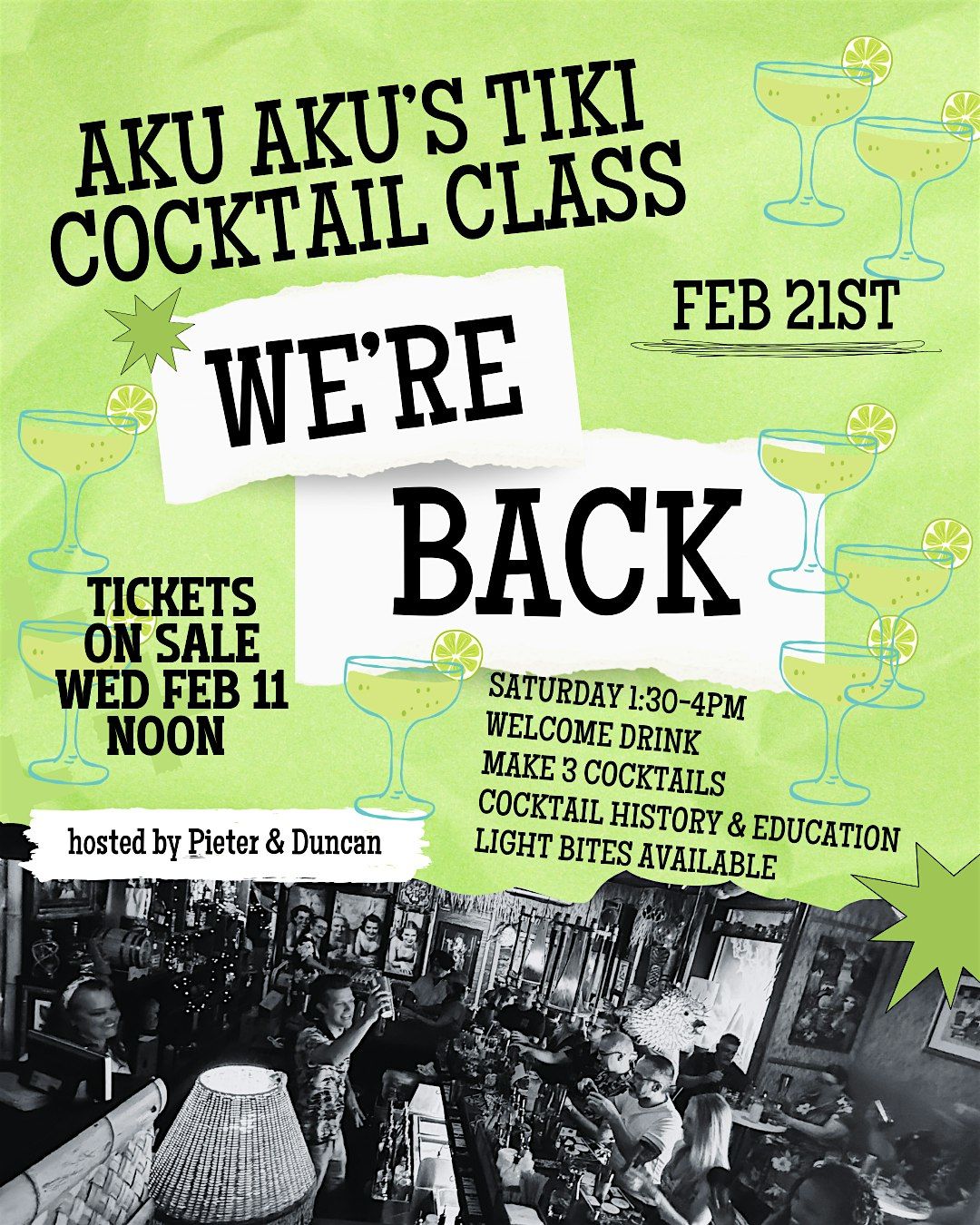 • All ingredients, tools, and glassware provided