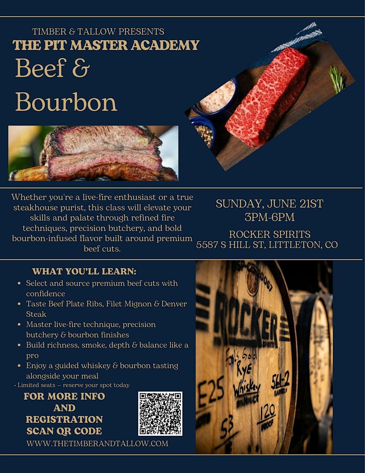 This is more than a BBQ class — it’s a premium steakhouse and bourbon experience designed for serious beef lovers, backyard pitmasters, and whiskey enthusiasts alike.