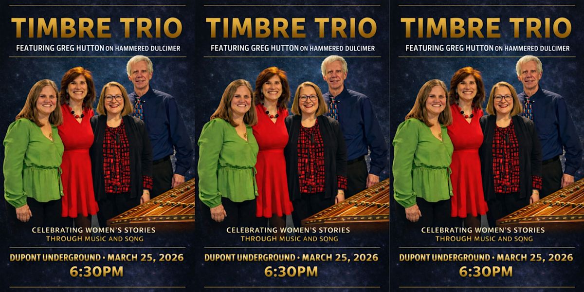 Timbre Trio, featuring Greg Hutton on the hammered dulcimer, weaves luminous three-part harmonies with traditional folk and original contemporary songs that explore history, myth, and memory.