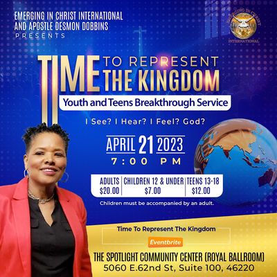 Welcome to the Time To Represent The Kingdom Gathering happening at the Tylane Building on Friday March 13, 2026 at Prayer 6 PM EST Service 7:00pm EST Saturday March 14, 2026 @ Prayer 9 AM EST Workshops 10 AM EST Workshops