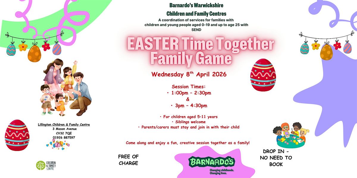Time Together is a Arts and Activities Family Time DROP-IN session aimed at children age 5-11 and their parents. Siblings are welcome to join in. Please note the same activity is repeated for both sessions. Specific activities for each week will be posted on our website and social media, or contact the centre for more information.