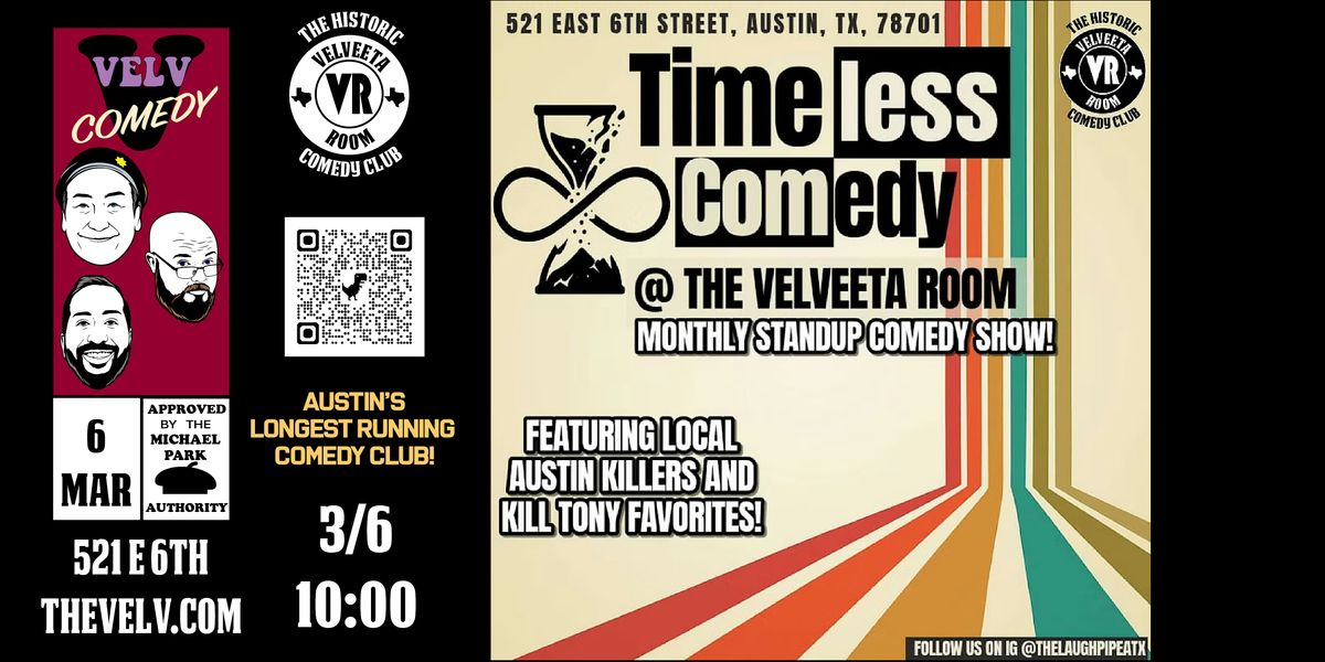 Step into Timeless Comedy at the Velveeta Room, the monthly show where Austin’s best comedians prove that great stand-up never goes out of style. New voices, killer sets, and a vibe that only The Velv can deliver.