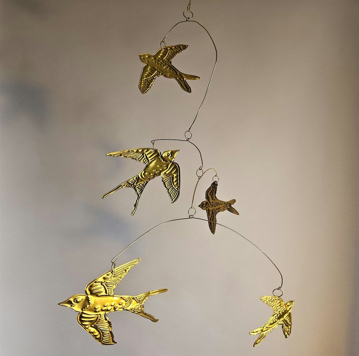 Join Gemma Barnett, a Leeds based multidisciplinary artist, for a hands-on kinetic mobile making workshop inspired by Alexander Calder’s asymmetrical mobiles. Unlike Calder’s abstract approach our hanging mobiles will showcase both tin embossed swallows & swifts, marking the arrival of these magnificent birds back to the UK after a long winter abroad.