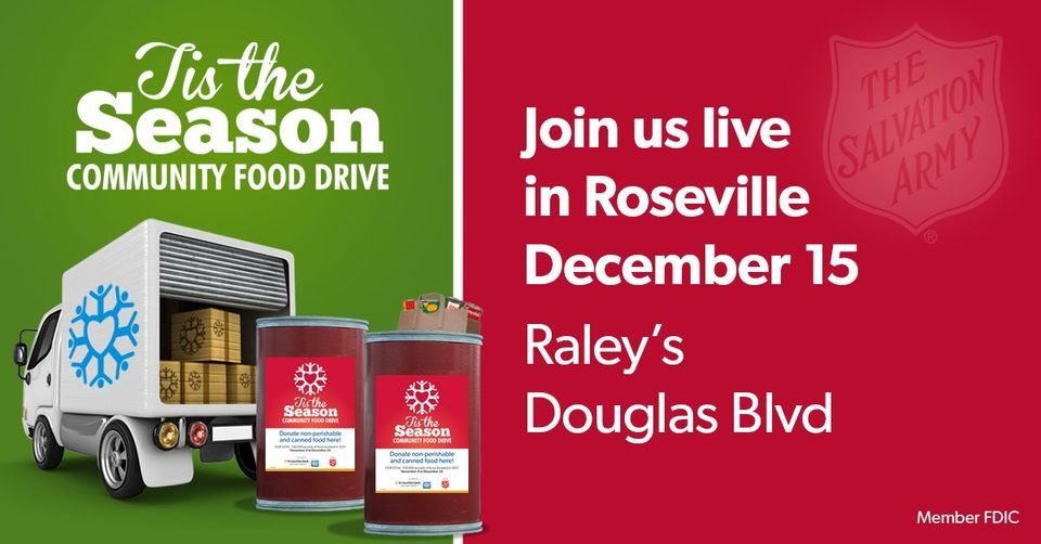 Make the holidays brighter for families in need. Join us live outside of Raley's at 1915 Douglas Blvd, Roseville, CA 95661, from 3-7 PM as we celebrate our 16th Annual Tis the Season Food Drive. Donate canned or non-perishable food and receive a personal thank you from our staff and The Salvation Army. Help us reach our goal of 80,000 pounds of food donated in 2022. All donations stay local and help feed families throughout the year. #MemberFDIC