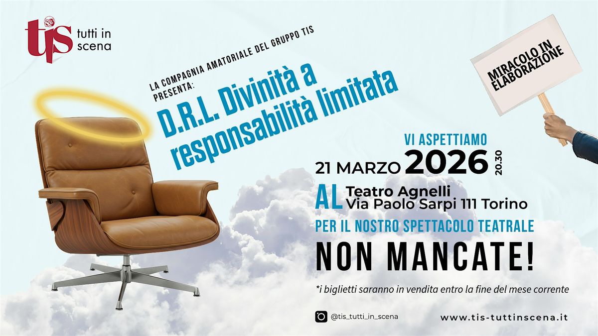 La compagnia amatoriale TIS – Tutti In Scena è felice di invitarvi al suo primo spettacolo teatrale: una commedia ironica e scatenata che porta il… Divino in ufficio!