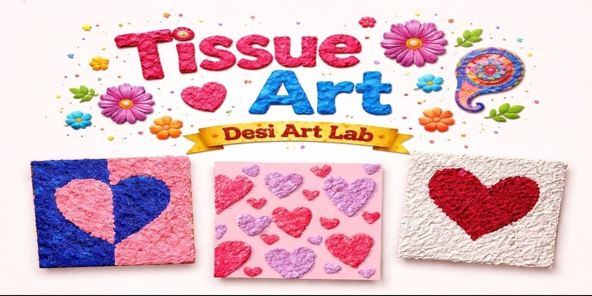Discover the joy of creating beautiful textured artworks in this Tissue Art Workshop by Desi Art Lab. In this session, participants will learn how to transform simple tissue paper into vibrant, textured designs on canvas. With easy techniques and guided steps, you will create your own colorful artwork while exploring creativity in a fun and relaxing environment. Perfect for beginners and art lovers alike.