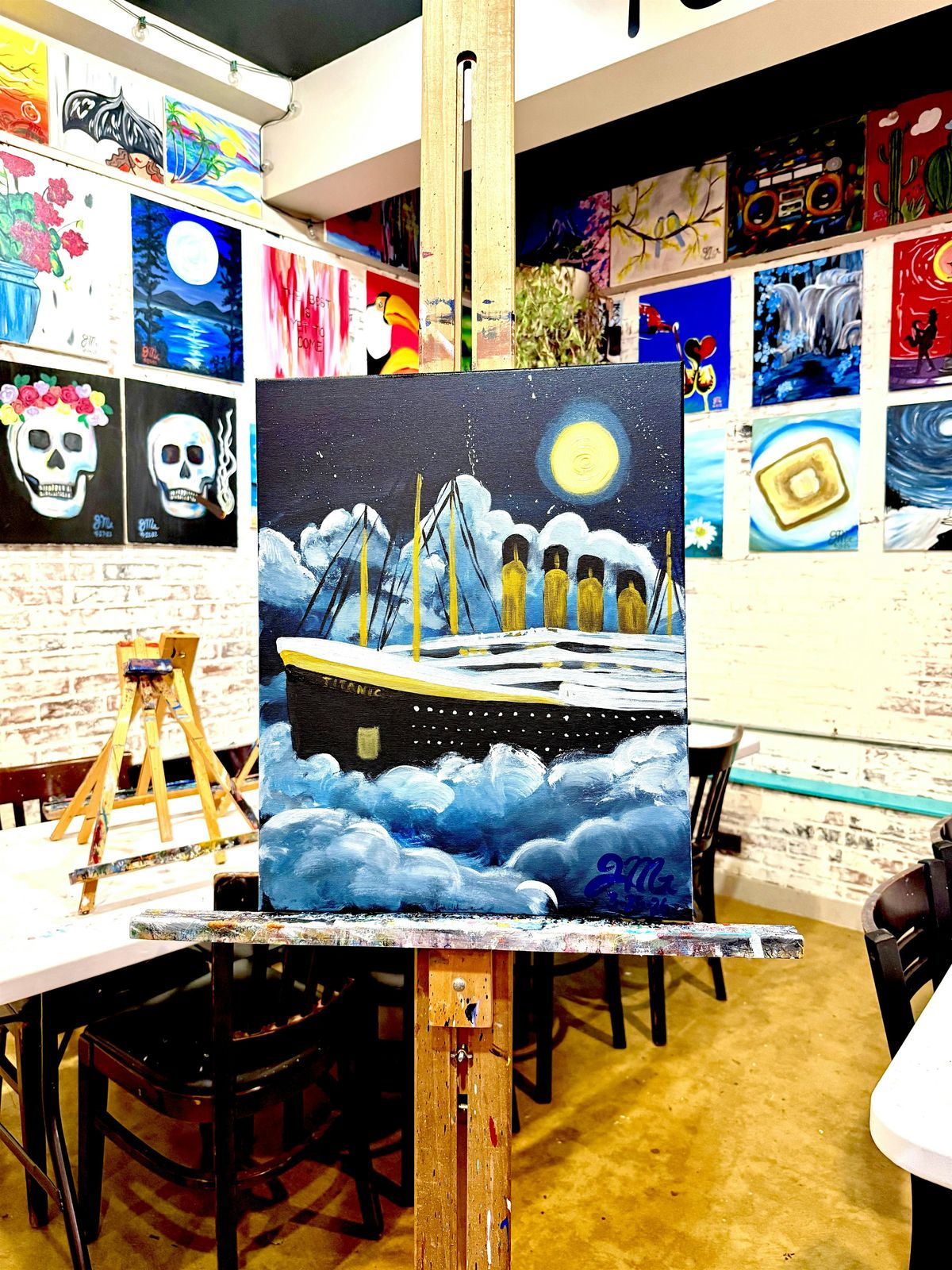 Get ready for a fun-filled evening at our Titanic Sip and Paint event! Unleash your inner artist while sipping on your favorite drinks. Whether you're a pro or just here for laughs, it's all about good vibes, creativity, and making memories. Join us in person for a night of painting, sipping, and chilling. Bring your friends or make new ones – everyone’s welcome!