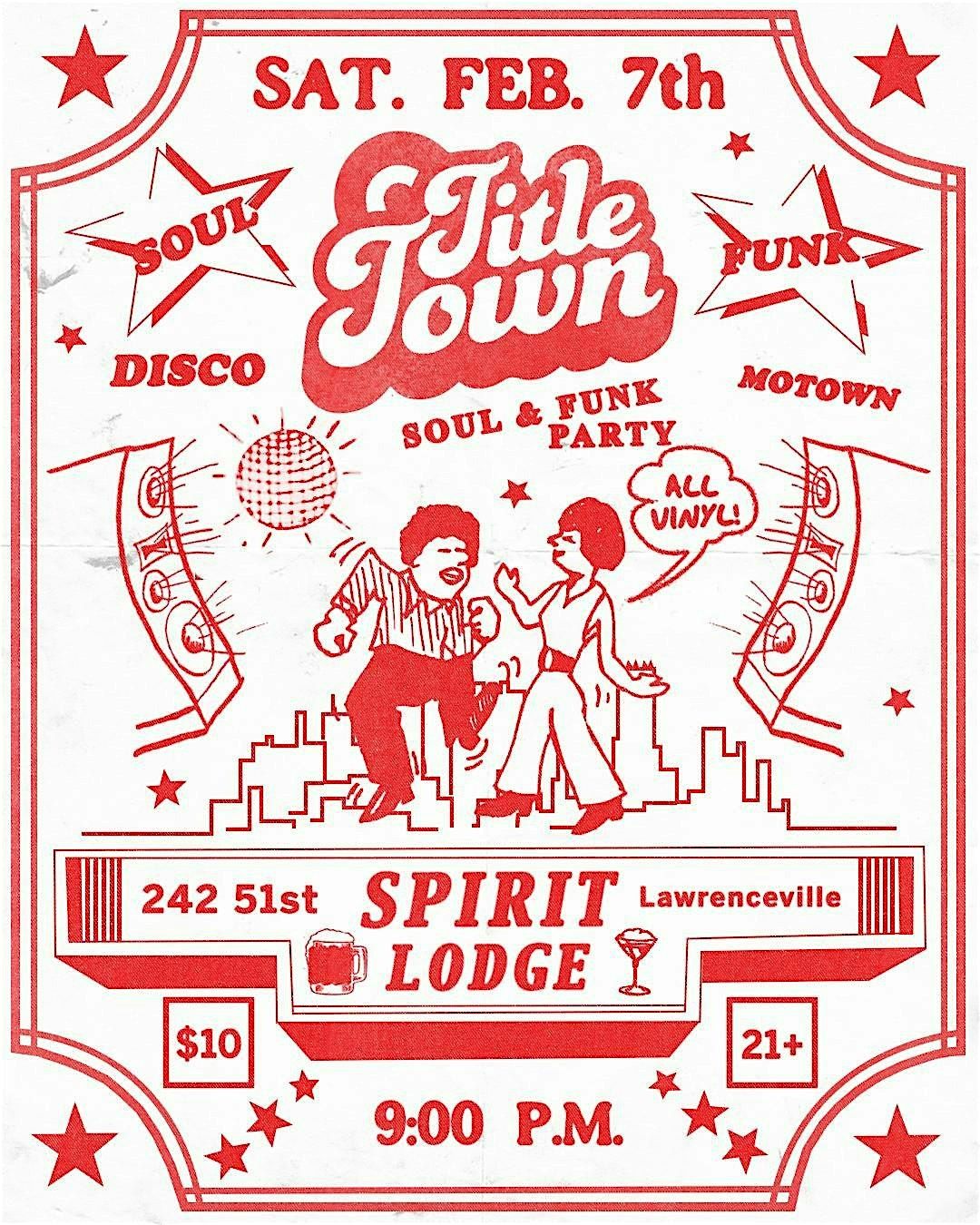Bringing freshness to Pittsburgh’s clubs since 2009, TITLE TOWN stays true to its original sound, residents J.Malls & Gordy G. take you on a journey across the musical landscape - resurrecting deep soul, funk and disco cuts from the early-1960s through the late 1980s - mixing up rarities from Honey & The Bees, The Third Guitar, and Family of Eve with stone cold classics from Aretha, James Brown, Sister Sledge, The Spinners, Curtis Mayfield, Gwen McCrae, and more.