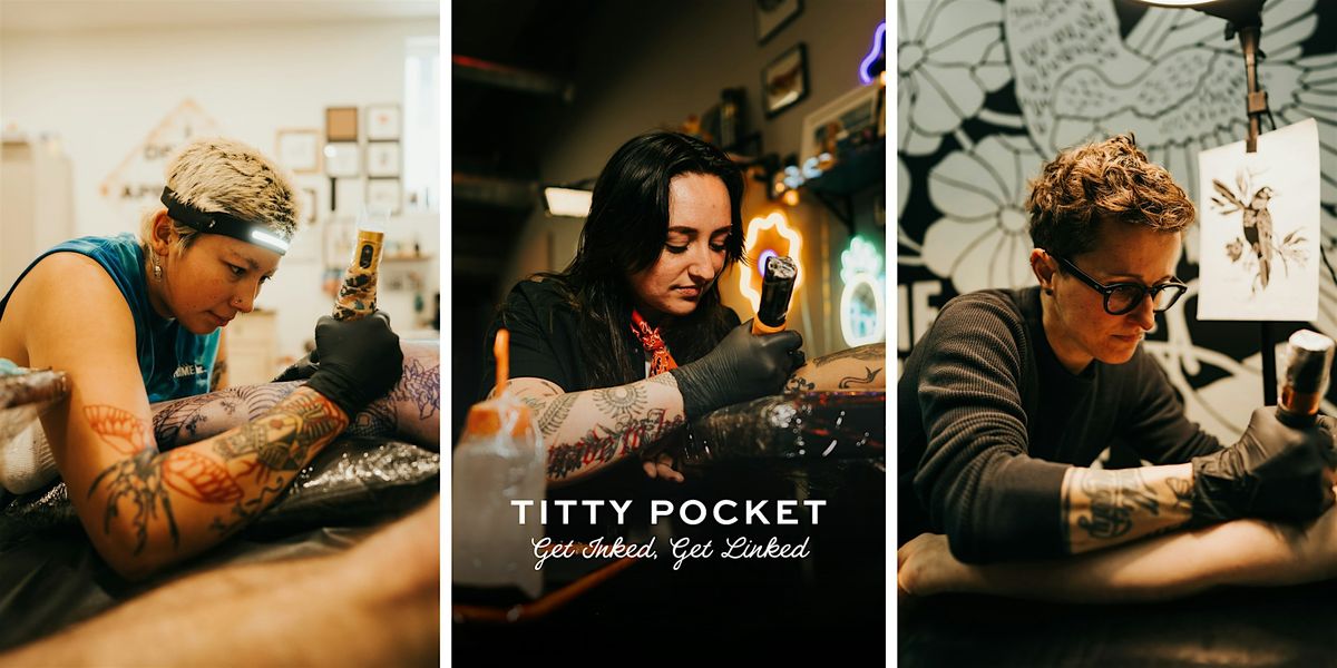 This special edition of TITTY POCKET highlights three local tattoo artists, each with their own exclusive flash sheet. Come ready to commit: tattoos are first come, first serve—no appointments, no holds, no waitlists. When the spots are gone, they’re gone.