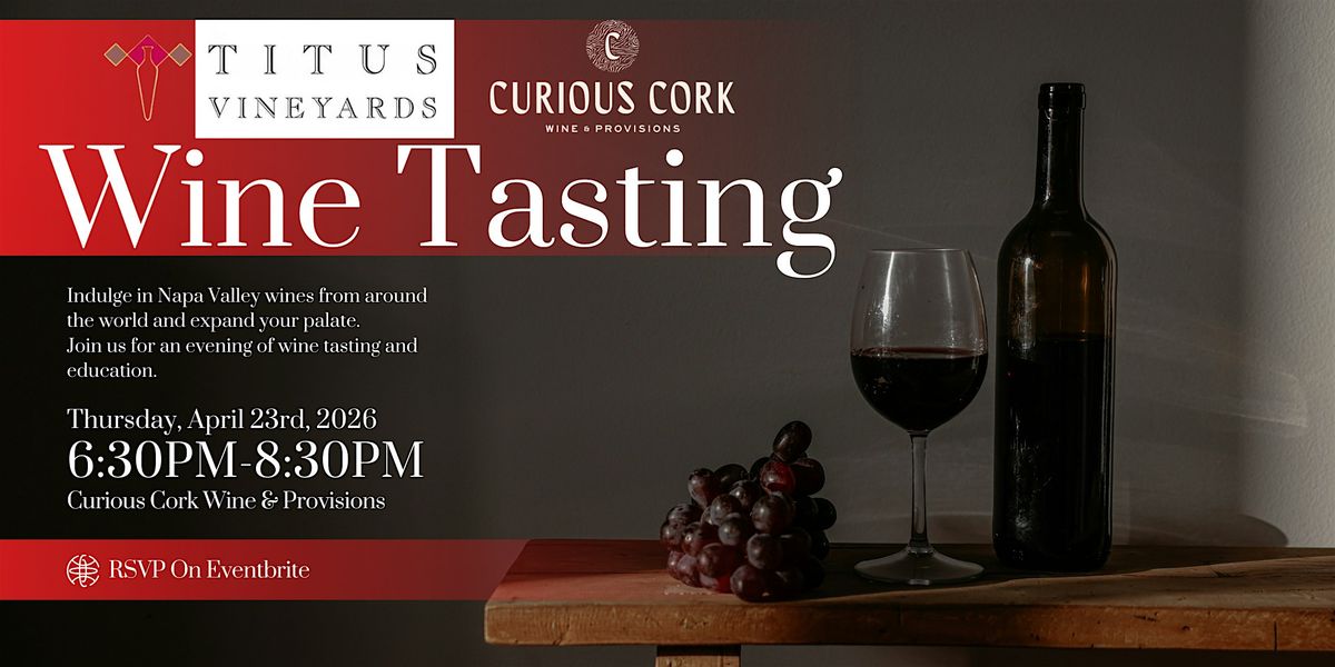 Titus Vineyard at Curious Cork Private Wine Tasting! Includes wines and individual charcuterie. Wine Maker led.About this Event
