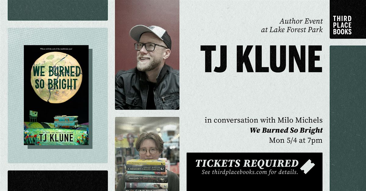Third Place Books welcomes author TJ Klune back to the stage at our Lake Forest Park location for a conversation about his new standalone novel — a novel following a long-married gay couple crossing the country on a last-hurrah road trip before a black hole swallows the earth. Third Place bookseller Milo Michels joins in conversation.