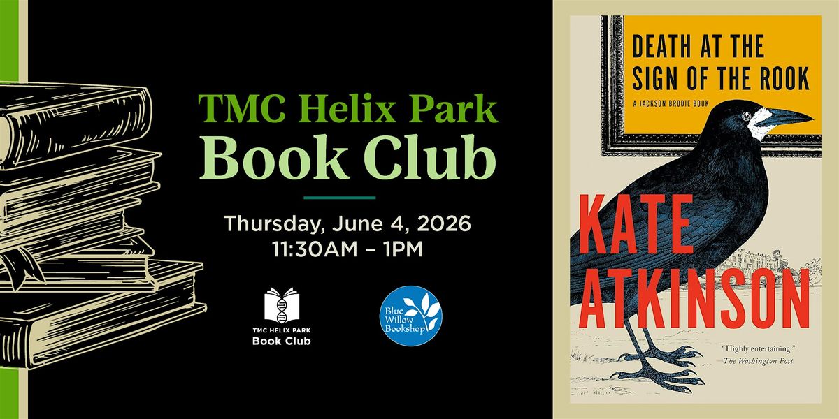 Dive into a mysterious novel with us on Thursday, June 4, 2026, in the TMC3 Collaborative Building's Levy Conference Room as we discuss Death at the Sign of the Rook by Kate Atkinson.