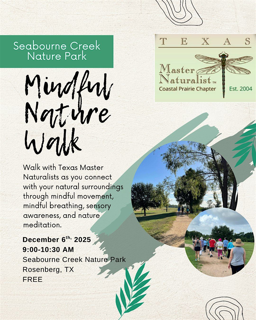 Join Texas Master Naturalists for a uniquely mindful nature walk at Seabourne Creek Nature Park.About this Event
