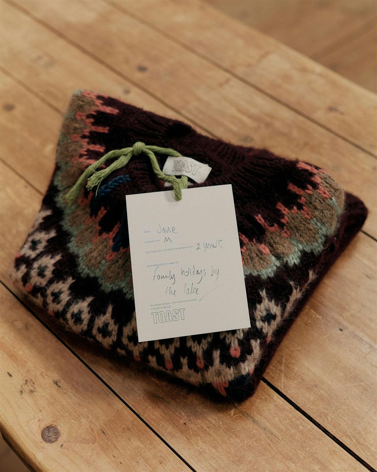 At the beginning of our Exchange event, we welcome you for refreshment drinks and to spend time writing your story label detailing its history and sharing stories on your pieces. You can bring up to five worn TOAST garments to trade for tokens. Each piece will be assessed by our shop teams.