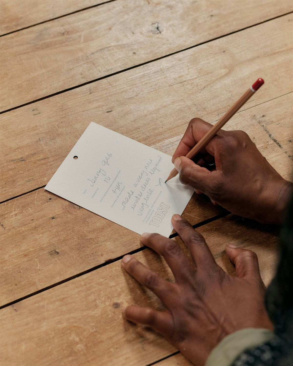 At the beginning of our Exchange event, we welcome you for refreshment drinks and to spend time writing your story label detailing its history and sharing stories on your pieces. You can bring up to five worn TOAST garments to trade for tokens. Each piece will be assessed by our shop teams.