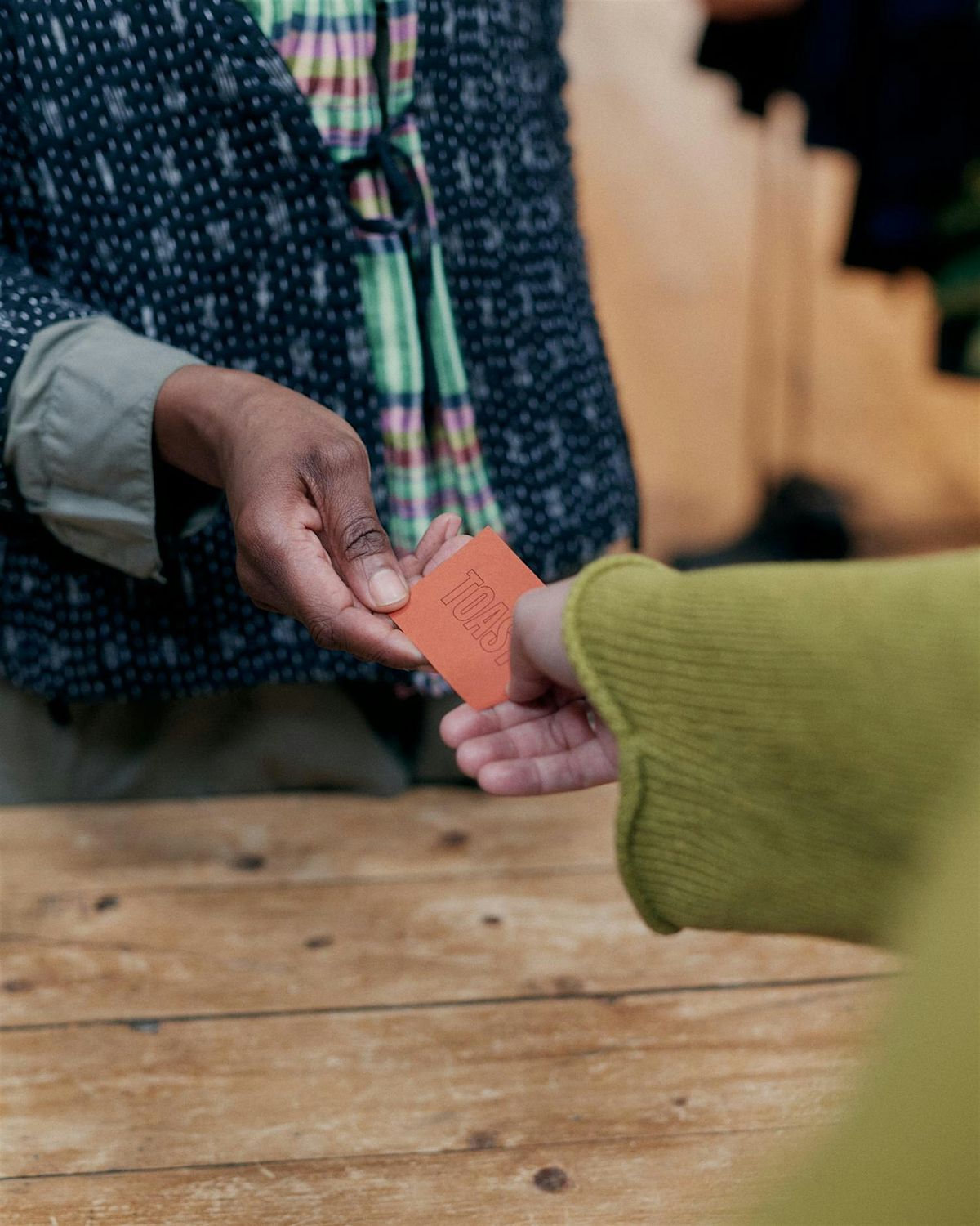 At the beginning of our Exchange event, we welcome you for refreshment drinks and to spend time writing your story label detailing its history and sharing stories on your pieces. You can bring up to five worn TOAST garments to trade for tokens. Each piece will be assessed by our shop teams.