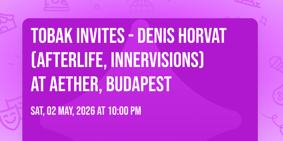 I am excited to announce the debut event of my new series, hosted by Aether, one of the hottest underground clubs in Budapest. The headliner of the evening will be none other than Denis Horvat, the well-known mastermind from the Afterlife and Innervisions labels. Come and join me and my guests for an all-night Melodic Techno session.