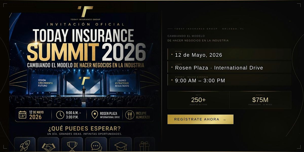 Today Insurance Summit 2026 en Orlando es una experiencia diseñada para agentes de seguros, emprendedores y profesionales que buscan crecer dentro de la industria de seguros de propiedad y accidentes (P&C) en Florida.