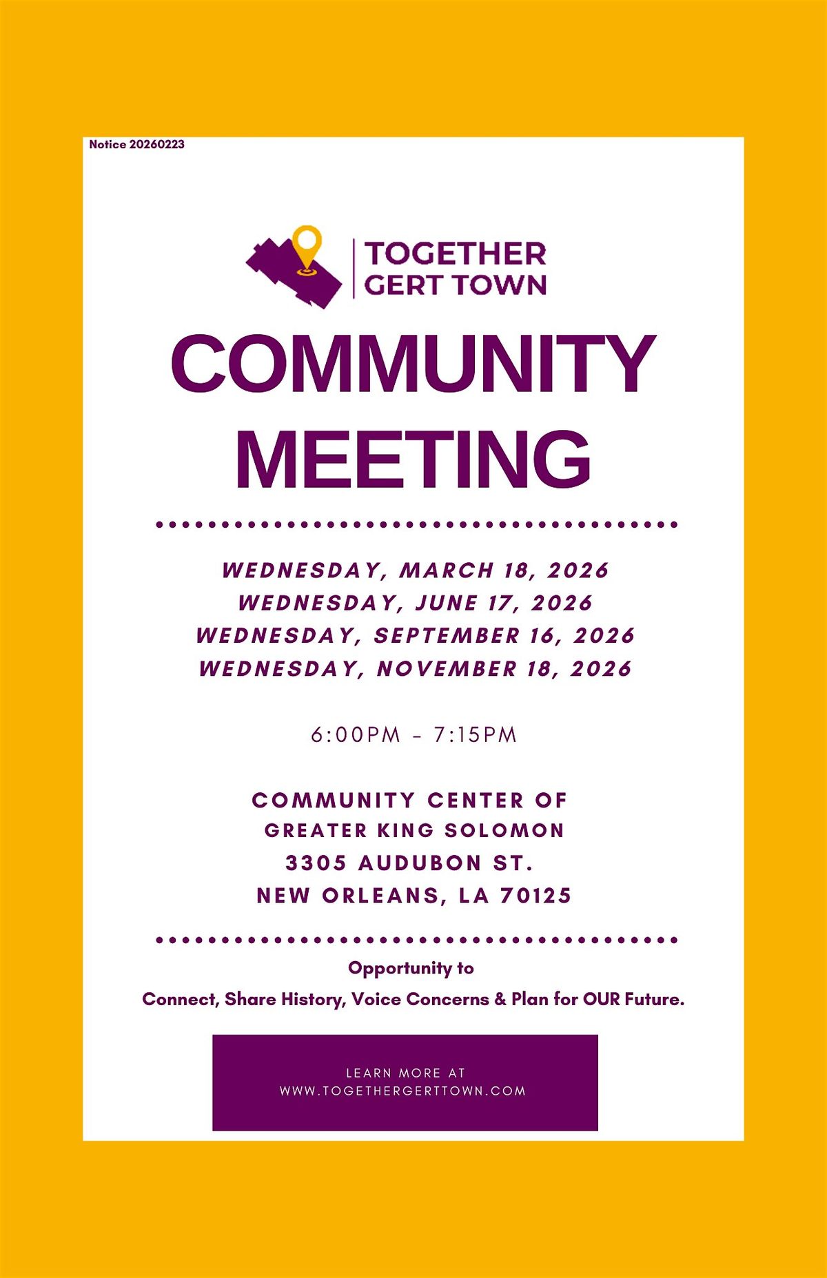 Hey neighbors! Join us in person for the Together Gert Town Community Meeting. It’s the perfect chance to connect, share ideas, and work together to make our neighborhood even better. Come hang out, meet familiar faces, and get involved in what’s happening around town. Everyone’s welcome – bring your energy and your voice!