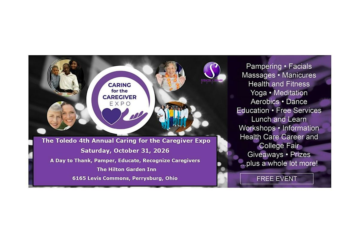 "The Toledo 4th Annual Caring for the Caregiver Expo” is a "Free" One Day Event to say Thank You and provide pampering, health and fitness, lunch and learn, resources, information, open mic, education and employment opportunities to Caregivers and First Responders! The Toledo 4th Annual Caring for the Caregiver Expo will be held on Saturday, October 31, 2026 The Hilton Garden Inn, Perrysburg, Ohio.
