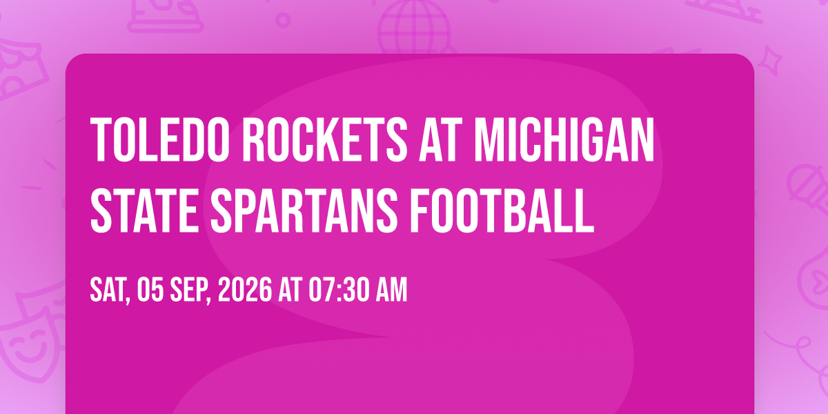 📍 Location: 42.7258, -84.485✨ Experience the magic of Toledo Rockets at Michigan State Spartans Football, where moments become memories that last a lifetime! 🏛️ The iconic Spartan Stadium (Michigan) in East Lansing, MI sets the perfect stage for an unforgettable celebration on September 5th, 2026 at 07:30 AM. 🌟 It's been a curated experience that brings together the best of entertainment and innovation, creating an atmosphere of wonder and excitement. From the moment you arrive, you'll be immersed in a world where the ordinary transforms into the extraordinary. 🎊 Book early to secure your place in what promises to be an event that will be talked about for years to come!