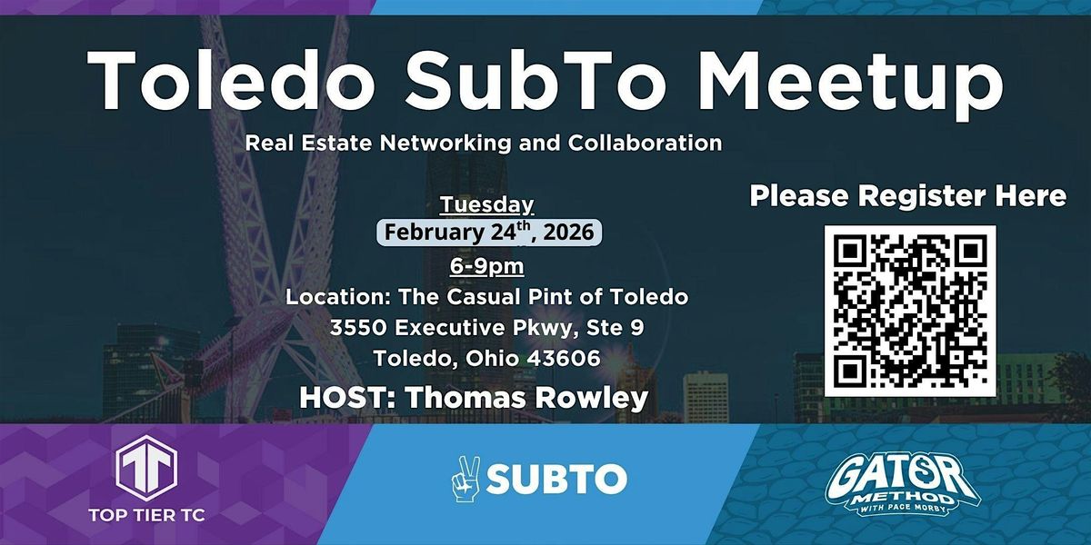 This is the perfect space to connect with like-minded investors, share strategies, and build lasting relationships in the Toledo area... all centered around real estate with an emphasis on creative financing.