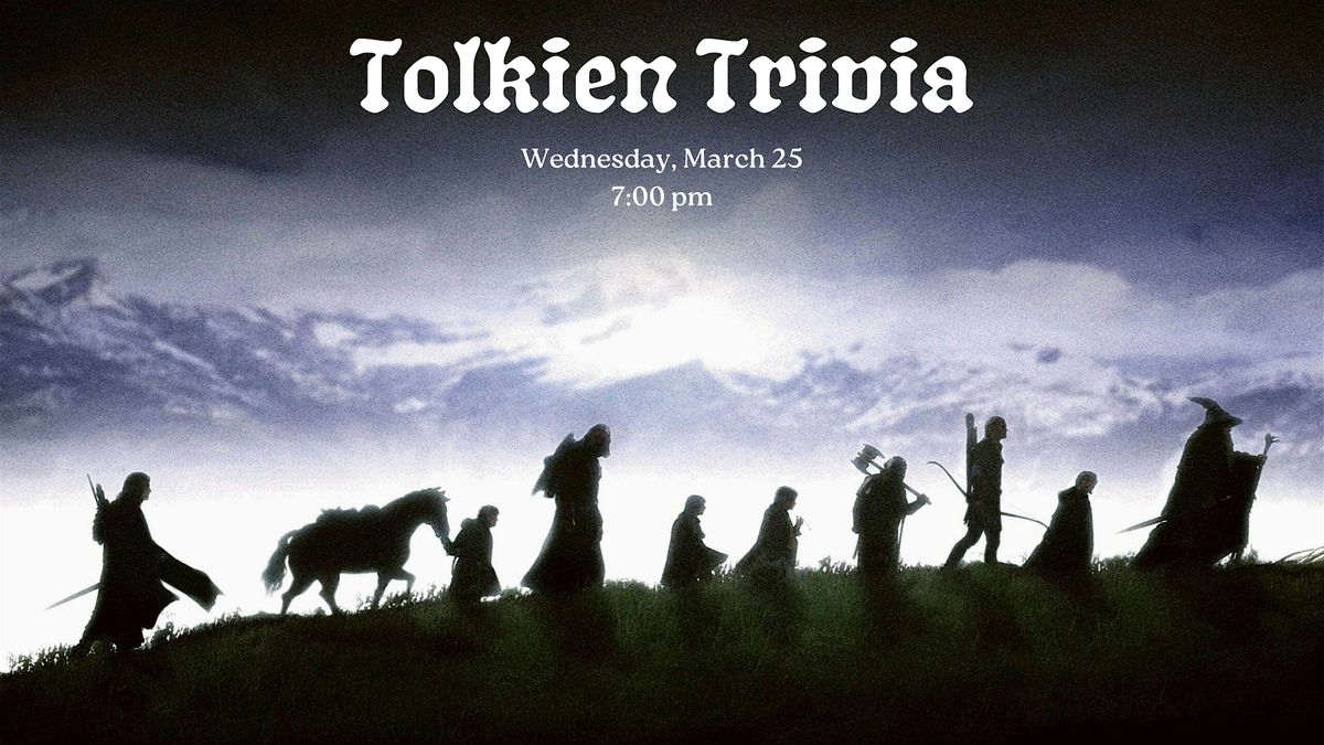 Join us on March 25th (known as Tolkien Reading Day) with a TOLKIEN TRIVIA PARTY. Tickets include trivia, wine, tea and light pastries!About this Event