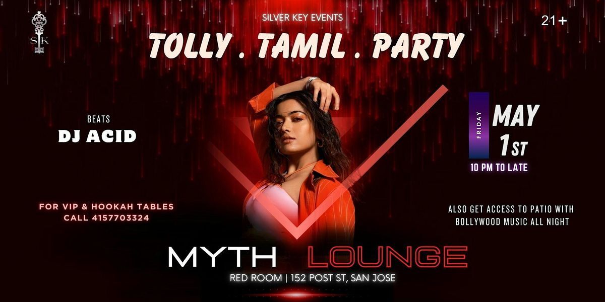 Join us at Myth Lounge (Red Room), San Jose for a high-energy night featuring the best of Tollywood & Tamil, mixed seamlessly with club anthems to keep you moving all night long.